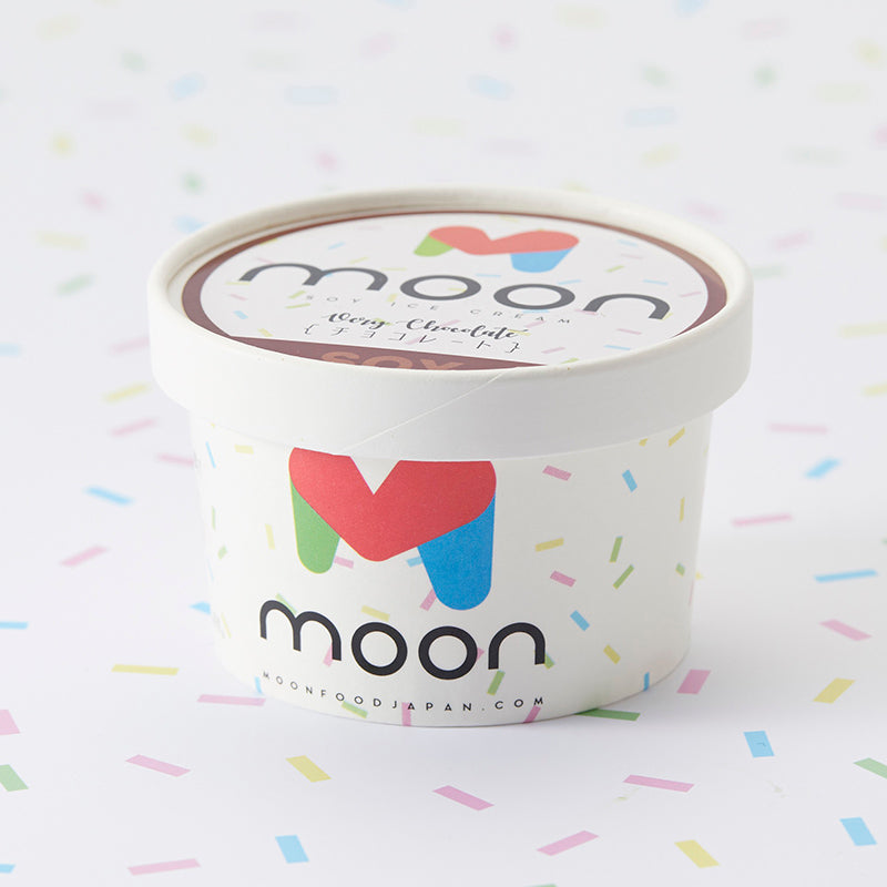 Moon Soya Milk Ice Cream is a premium soya milk ice-cream made from soya milk (100% Shiga Prefecture soya beans). It is a luxurious soymilk chocolate ice-cream with plenty of melted cocoa mass. We spent a lot of time creating a recipe that also makes the most of the balance between bitter, sour and sweet tastes and the rich soymilk aroma of Moon Ice, and we hope you will try the chocolate ice-cream that we have finally completed. Even people who don't like soya milk can enjoy it. *Moon ice cream dessert contains no animal ingredients.