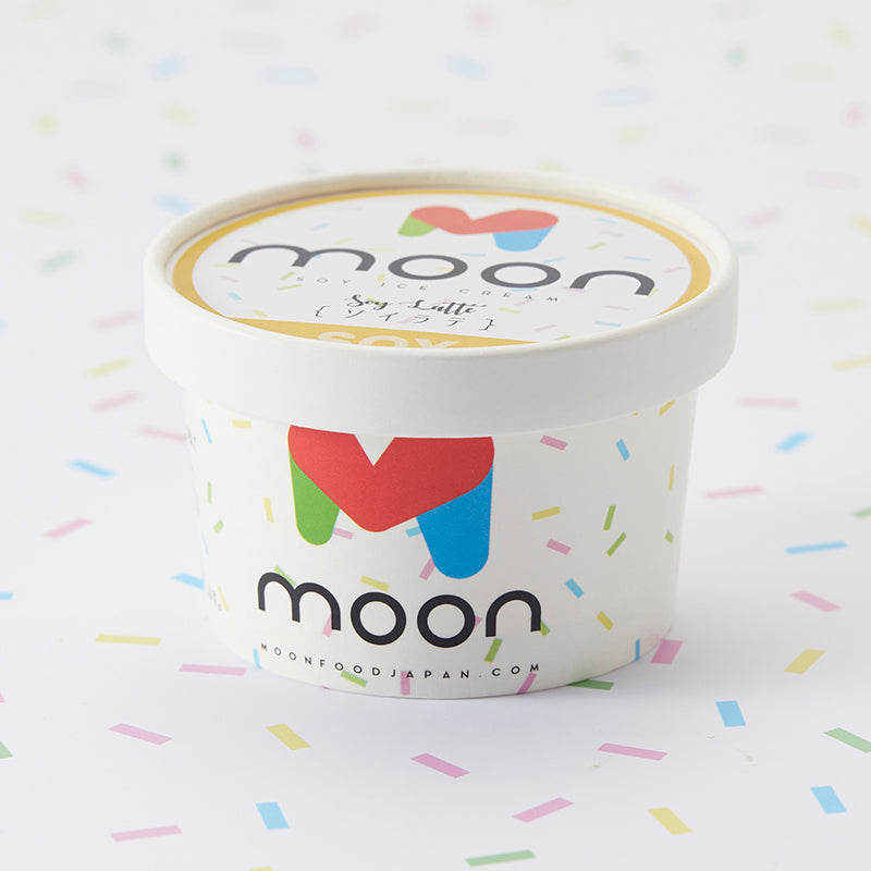 ムーン豆乳アイスは豆乳(滋賀県産大豆100%使用)を使ったプレミアム豆乳アイスです。甘いアイスとホロ苦いコーヒーの香りは最高の組み合わせです。アイスを作る直前にエスプレッソを淹れることでコーヒーの香りを豆乳アイスに閉じ込めました。あなたのお気に入りのカフェでいただく一杯のコーヒーに負けない至福のソイラテアイスをお楽しみください。※ムーンアイスデザートには動物性の材料を一切使っていません。