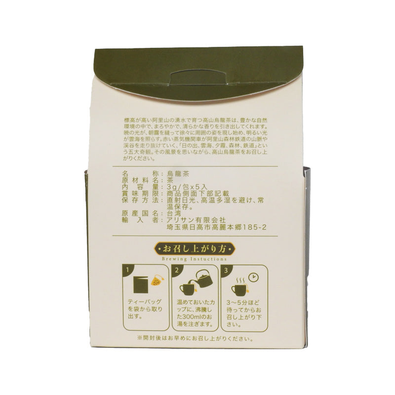標高が高い阿里山の湧き水で育つ高山烏龍茶は、豊かな自然環境の中で、まろやかで、清らかな香りを引き出してくれます。開封後は、お早めにお召し上がりください。