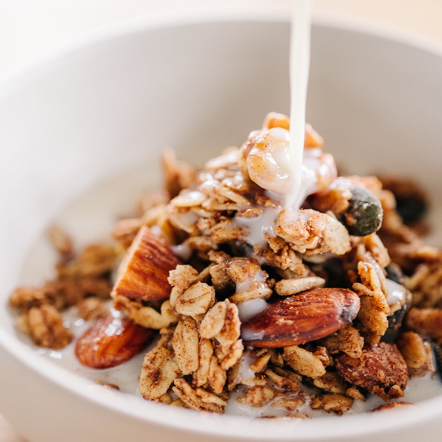 心地よい甘さのカカオグラノーラ。有機カカオニブの力強い香りと有機カランツの甘酸っぱさが交わることで、味わい深い一品に。おやつとしてそのままではもちろん、オルタナティブミルクとも相性良しです。