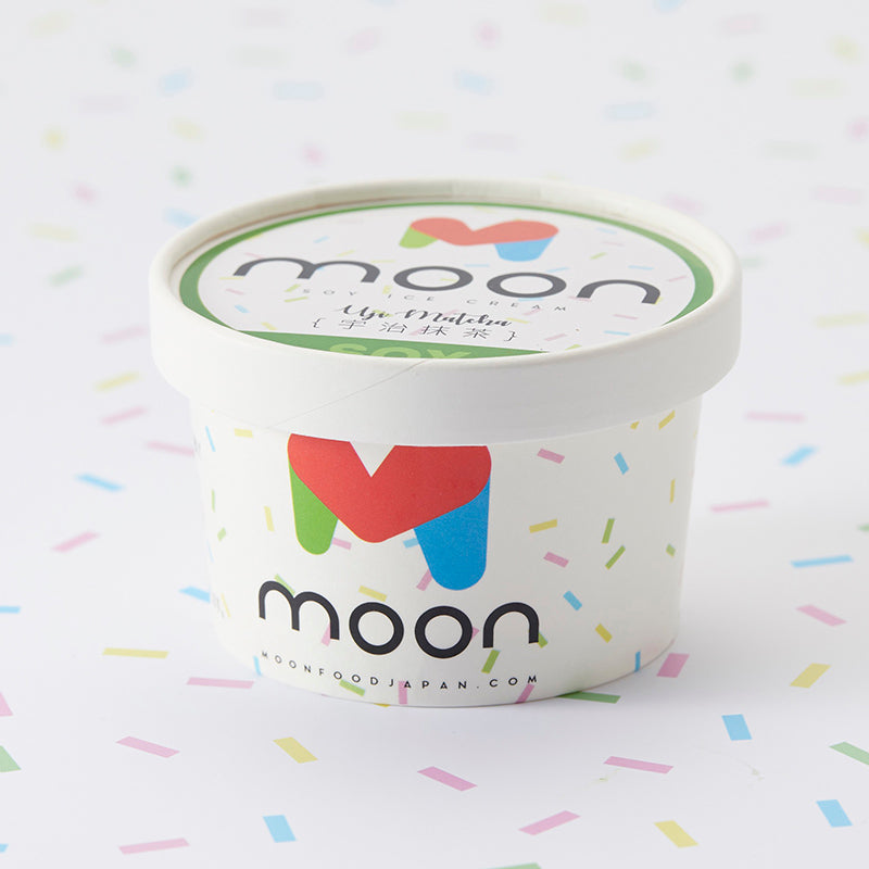 ムーン豆乳アイスは豆乳(滋賀県産大豆100%使用)を使ったプレミアム豆乳アイスです。ムーンアイスの濃厚豆乳と宇治抹茶をバランスよく組み合わせました。豆乳アイスだからこそ味わえる宇治抹茶の甘味、苦味をご堪能ください。※ムーンアイスデザートには動物性の材料を一切使っていません。
